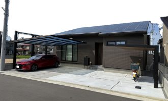 平屋住宅ならではの敷地の広さを有効に活用した外構デザイン事例です。建物と外構のバランスが絶妙に取れています。長年住み続けるからこそ大事にしたいポイントです。