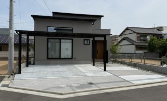 一番のこだわりは、建物の水平ラインを強調するブラックのフラットカーポート。余計な装飾を削ぎ落としたミニマルなデザインが、住まい全体に凛とした空気感をもたらします。